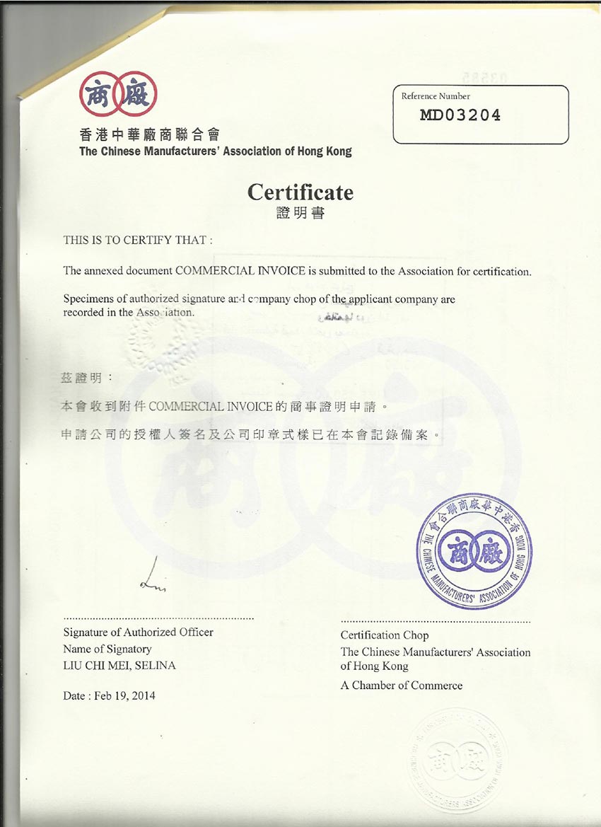 香港转口证CO+发票